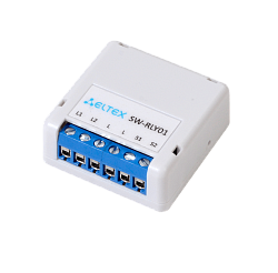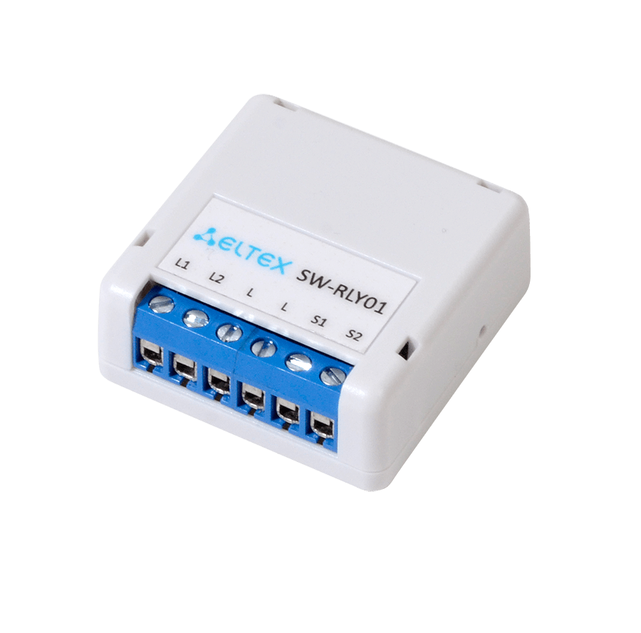 Беспроводное Wi-Fi-реле SW-RLY01 для управления осветительными приборами в электрической сети переменного тока с напряжением 230 В. Подключается к домашней Wi-Fi сети и взаимодействует с приложением умного дома Eltex Home из любой точки мира.