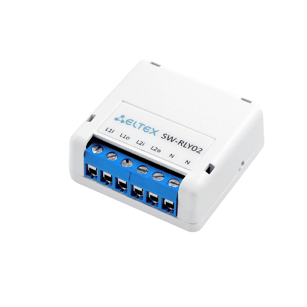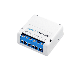Беспроводное Wi-Fi-реле SW-RLY02 для управления осветительными приборами в электрической сети переменного тока с напряжением 230 В. Подключается к домашней Wi-Fi сети и взаимодействует с приложением умного дома Eltex Home из любой точки мира.
